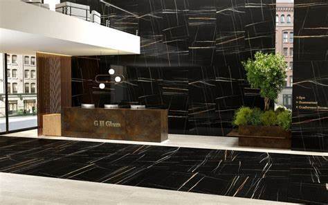 - Inspirowany unikalnym czarnym marmurem z efektownymi złotymi i białymi żyłkami