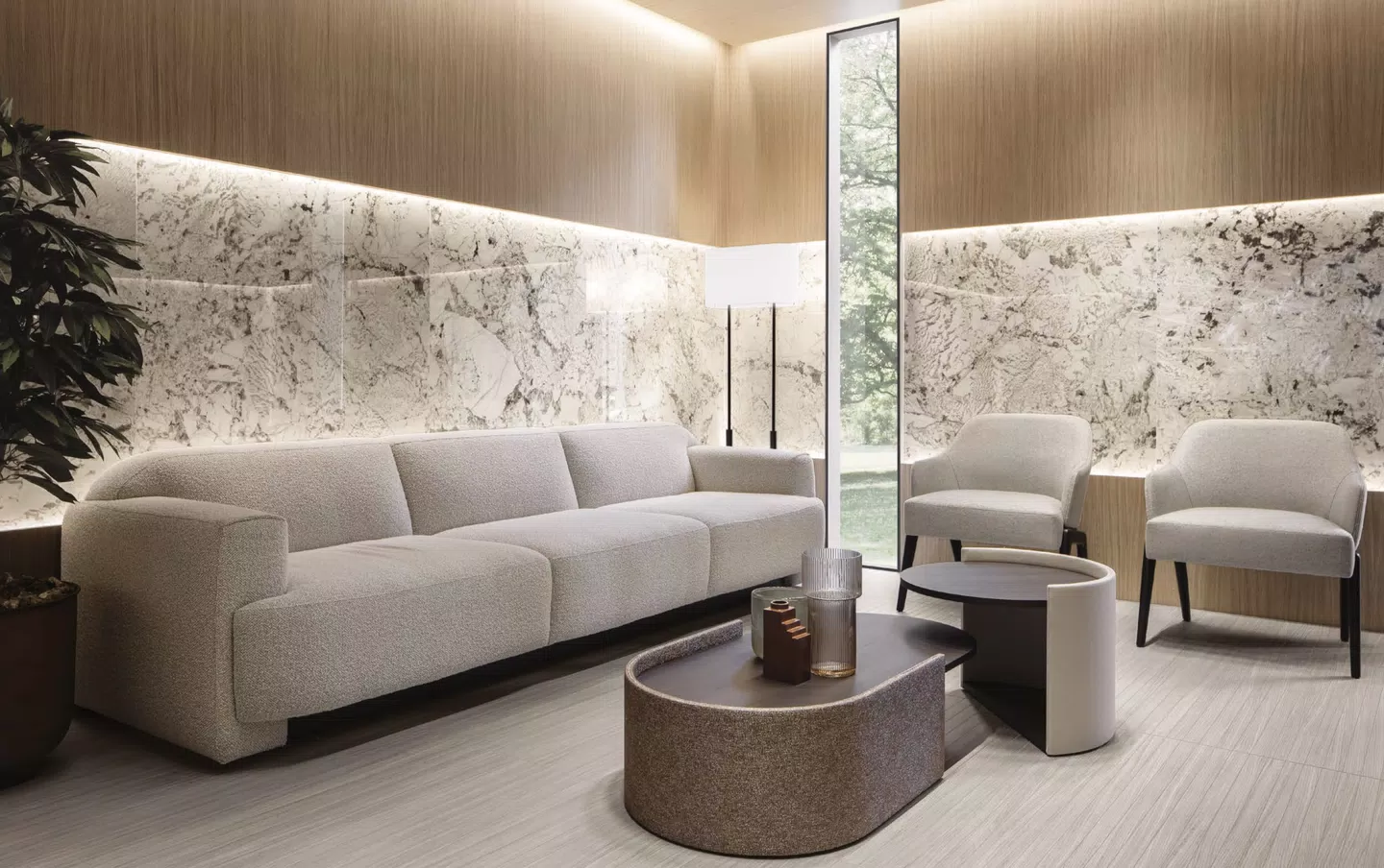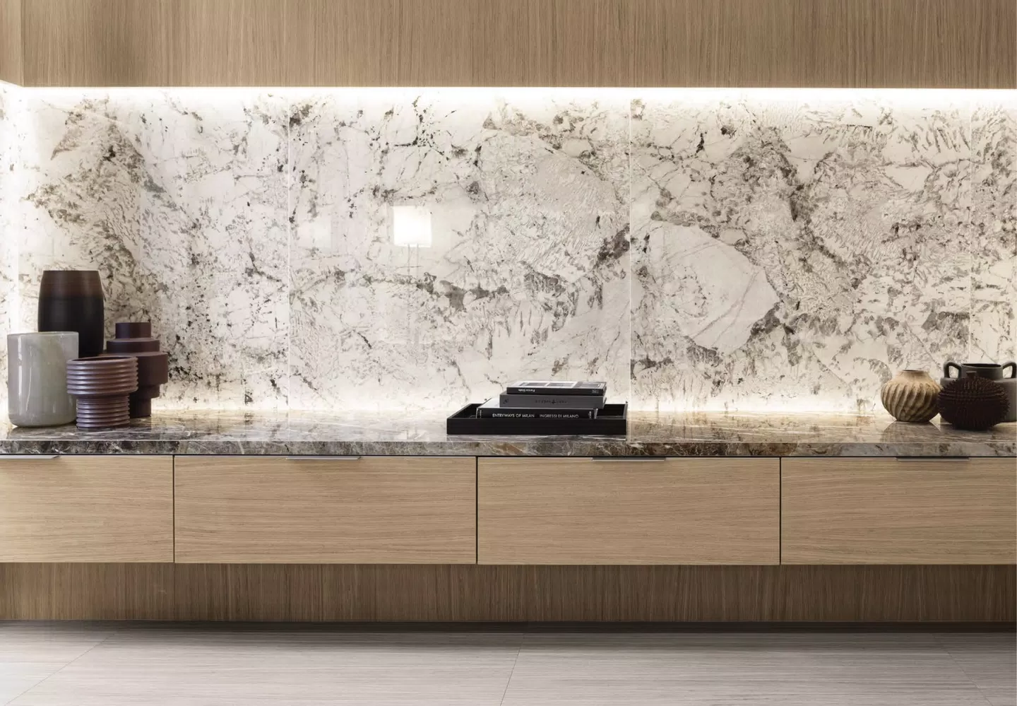 Ekskluzywna kolekcja spieków kwarcowych Nature Mood Glacier Creative Design firmy FLORIM łączy w sobie wyjątkową trwałość z estetyką inspirowaną naturalnymi kamieniami i drewnem. Subtelne przejścia kolorystyczne w odcieniach beżu, szarości oraz ciepłego brązu, z delikatnymi żyłkami, tworzą kompozycję pełną harmonii i wyrafinowanego stylu – idealną dla najbardziej wymagających przestrzeni.